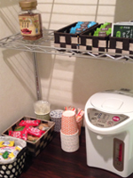 買いに行く時間を省き、勉強にあててほしいので、お茶、コーヒー、オレンジジュースなどの飲み物を用意しています。