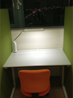 参考書を2冊広げながらでも余裕の幅100cm、奥行き70cmという大き目の机、隣の人がまったく気にならない高く(150cm)